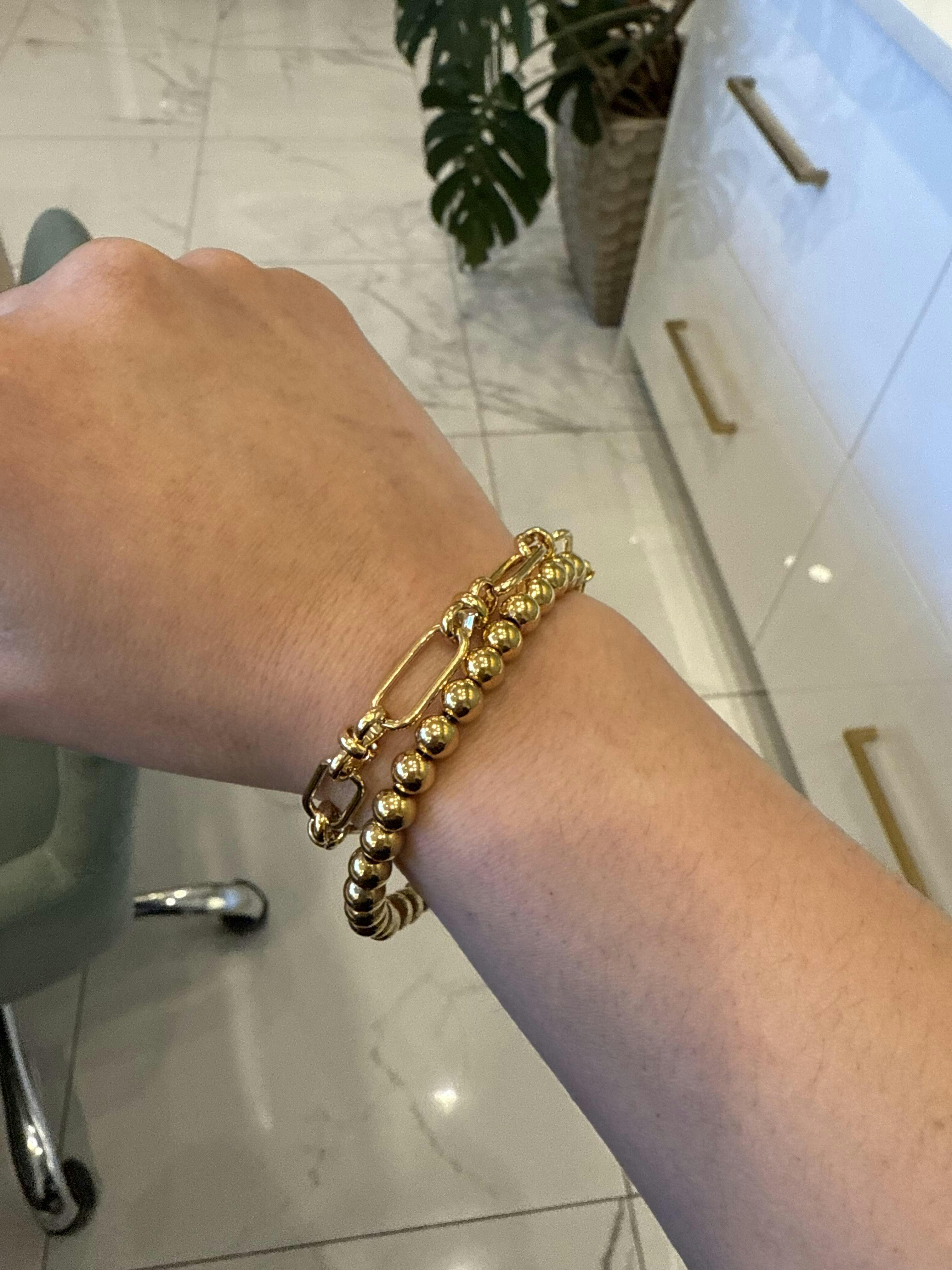 The "Tiwala" Chain Bracelet features a striking blend of smooth and cabled metals, crafted into elongated links with clean, architectural lines. It’s an elegant accessory that complements any style — whether worn alone or stacked for a layered effect. Elevate your jewelry collection with this sophisticated metal link chain bracelet.